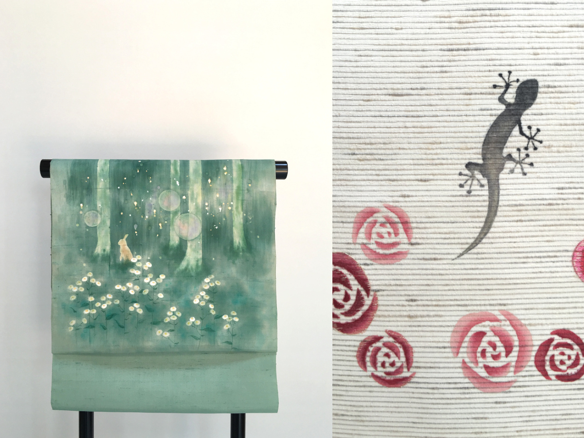 絹芭蕉生成り地九寸染帯*水紋(未仕立)