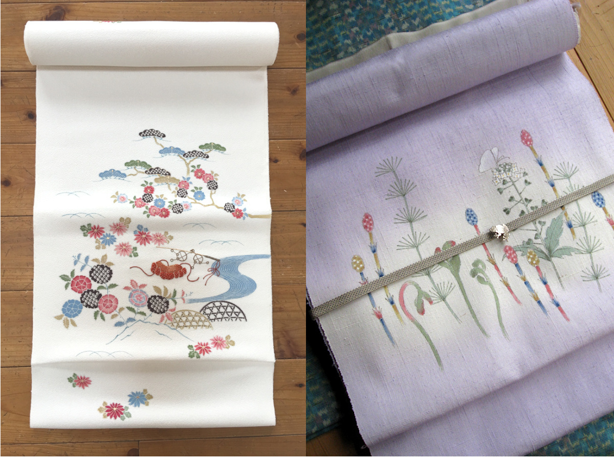 苧麻生成り地九寸染帯*Fragments(未仕立)