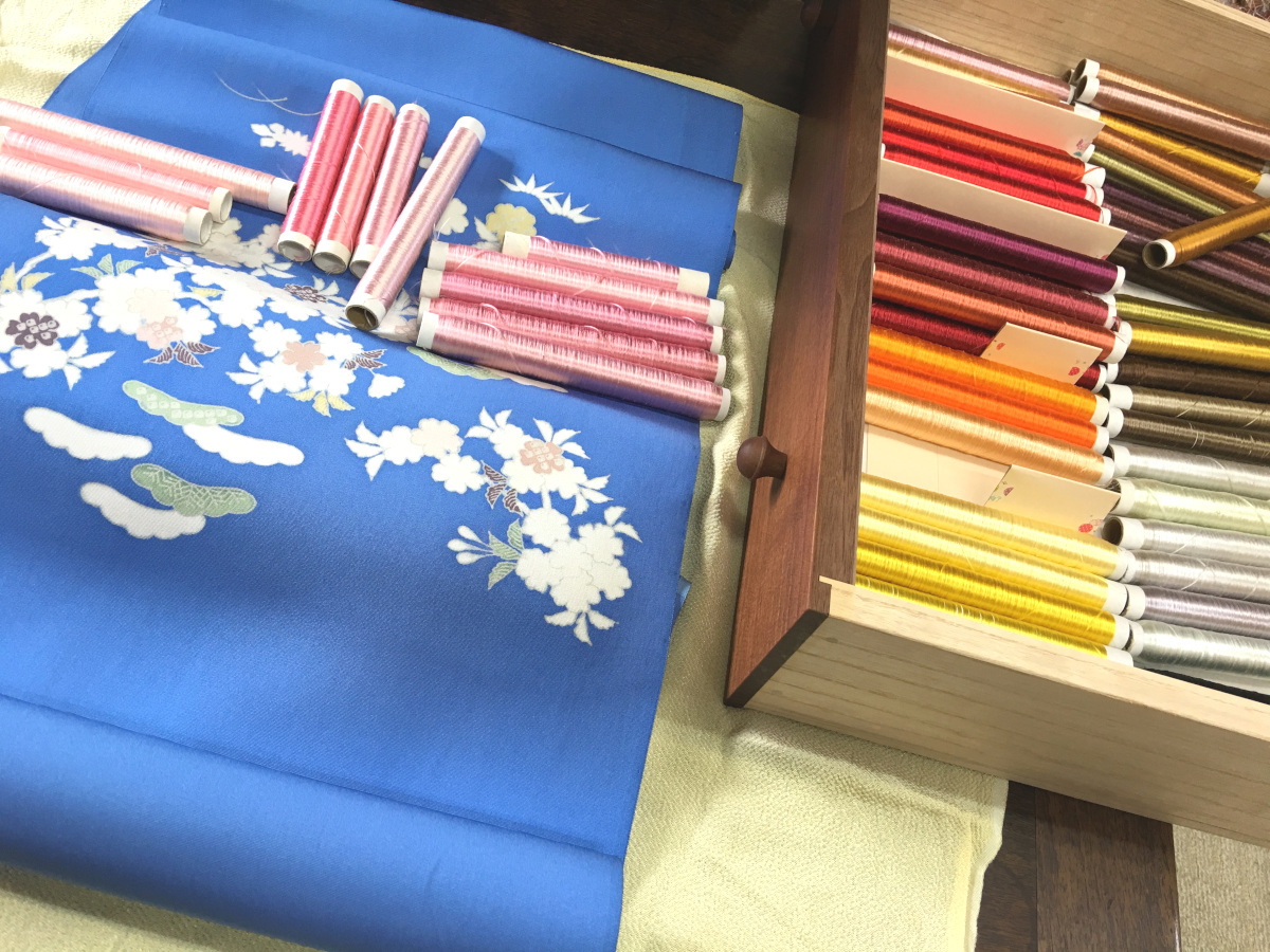 新古駒絽空色地九寸染帯*御所解(未仕立)