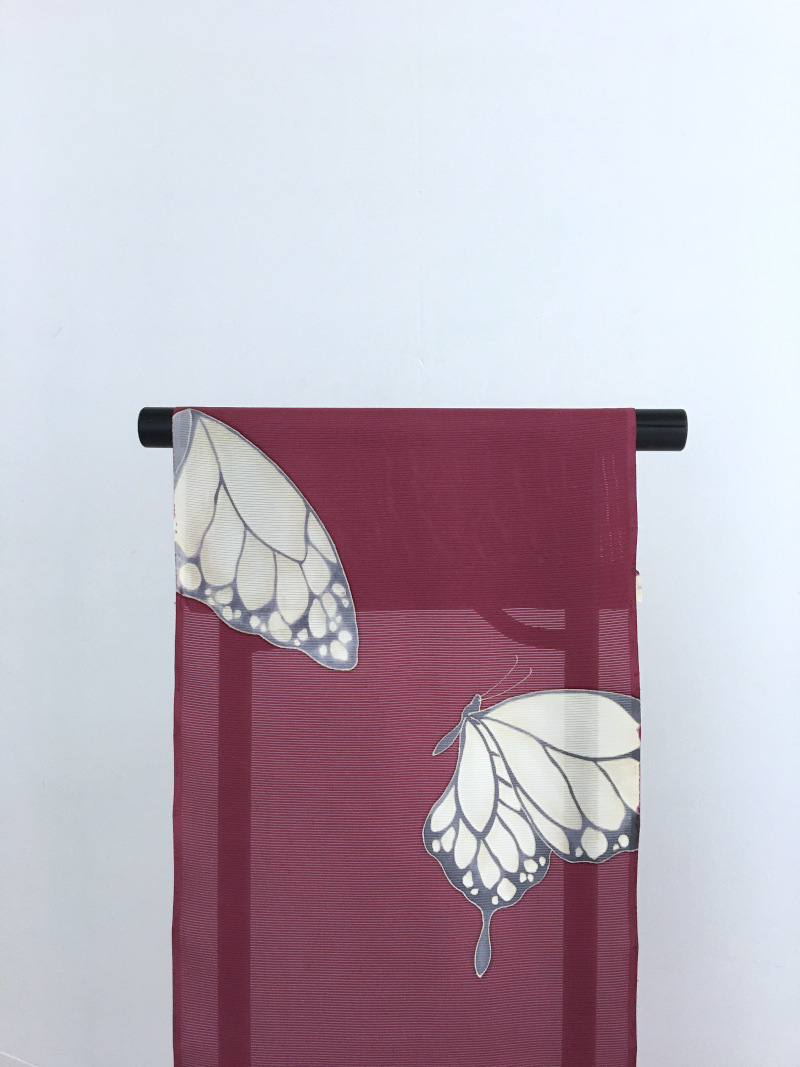 新古絽葡萄色地名古屋帯*揚羽(未仕立)