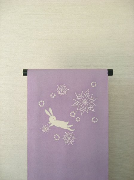 新古濱紬藤色地名古屋帯*雪うさぎ3(未仕立)